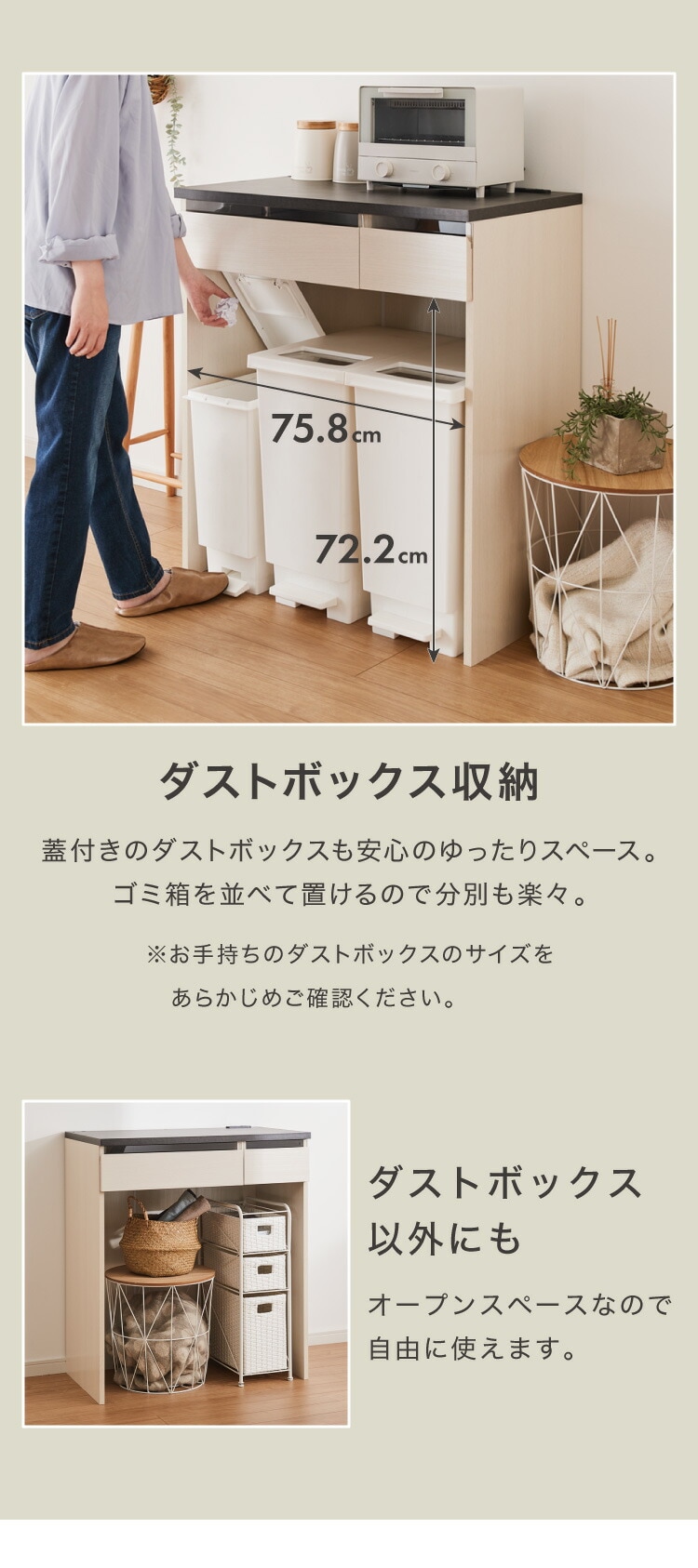 ダストBOX上のスペースを有効活用できる収納台です。