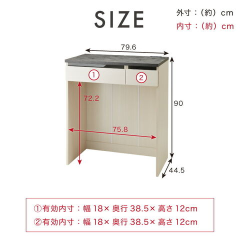 製品サイズ(約):幅79.6×奥行44.5×高さ90cm