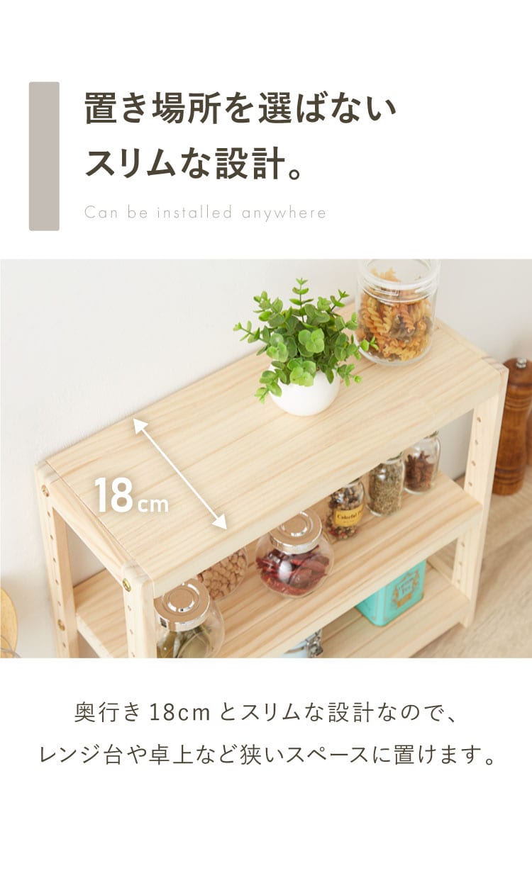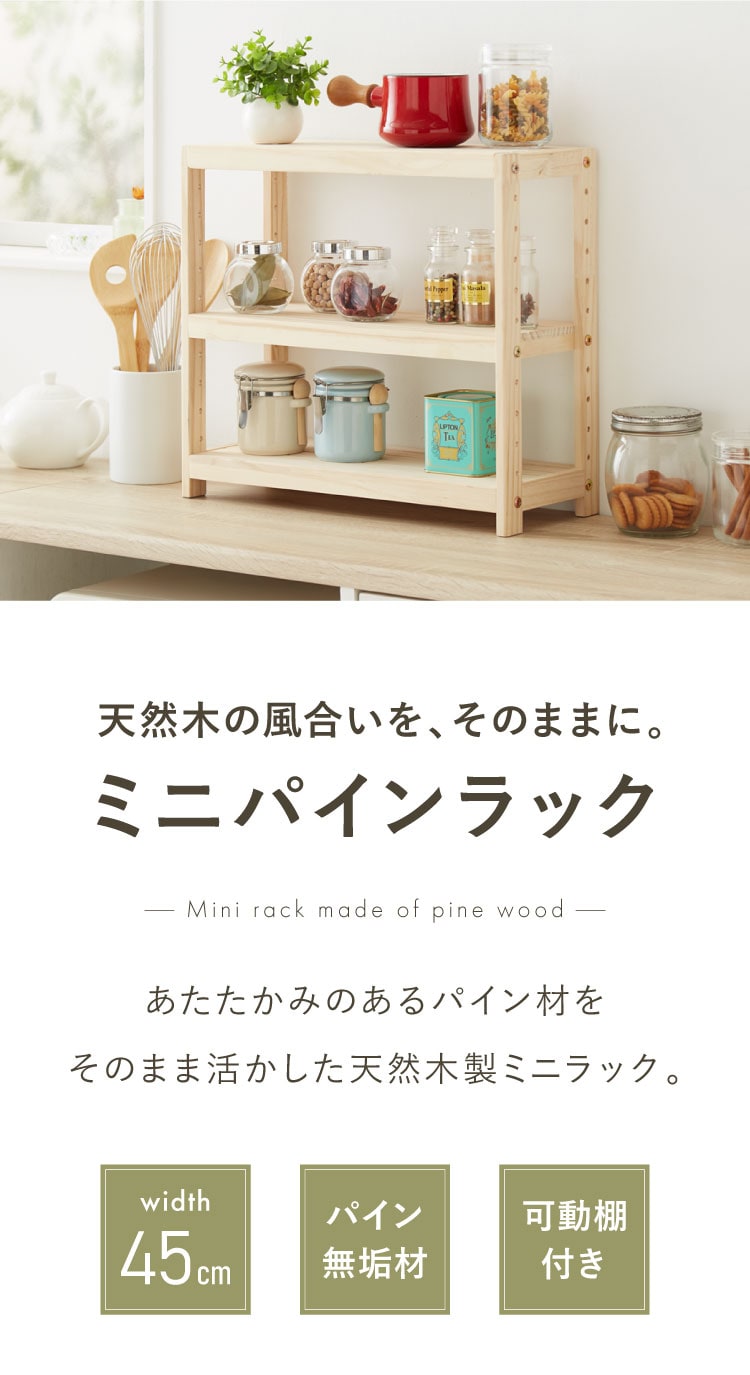 ミニパインラック スパイスラック 幅45cm 奥行18cm 高さ40cm 天然木 パイン材 木製 カウンター上 収納 食器棚 薄型 ミニ コンパクト ミニ食器棚 小型 キッチン ラック 卓上 卓上ラック キッチンラック【送料無料】