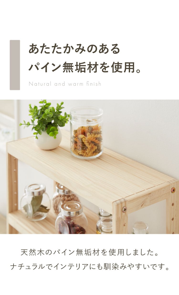 ・天然木の風合いをそのまま生かしたミニサイズのパインラック