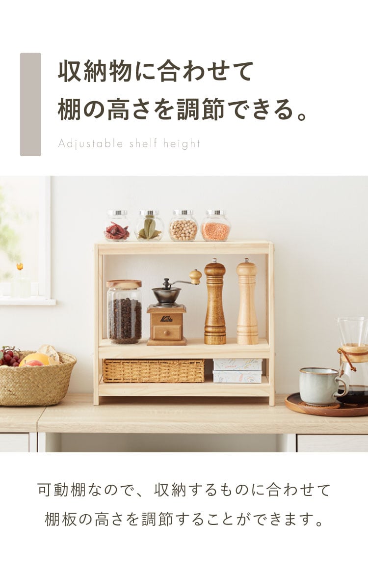 ・置くものによって棚板の位置を調整可能