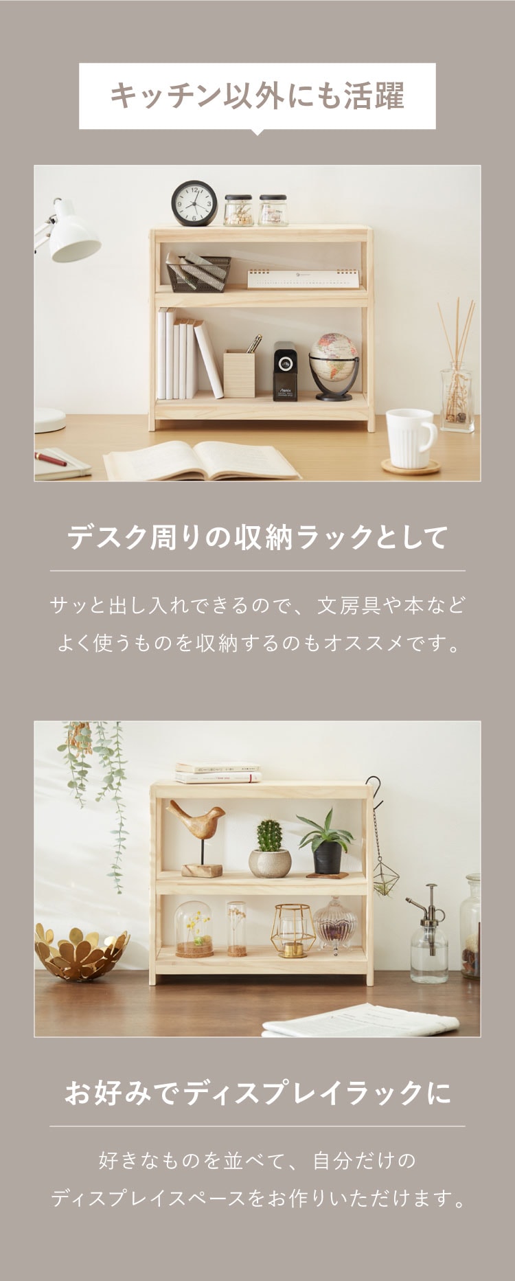 ・スパイスラックなどのキッチン収納やデスク上収納に