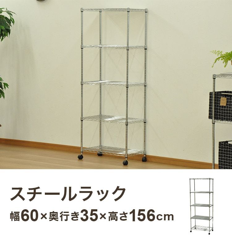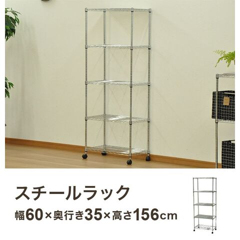 スチールラック 幅60 奥行き35 高さ156 シェルフ ワイヤー オープンラック キャスター付き コンパクト リビング スリム ポール径19mm 防サビ 収納【送料無料】