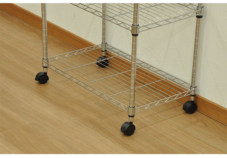 キャスター付きのスチールラック。