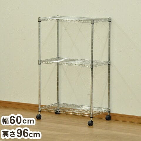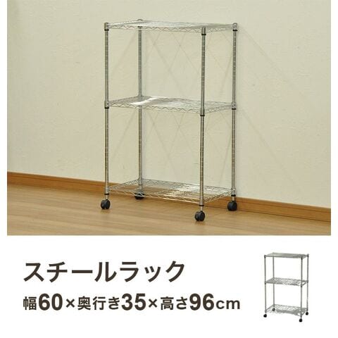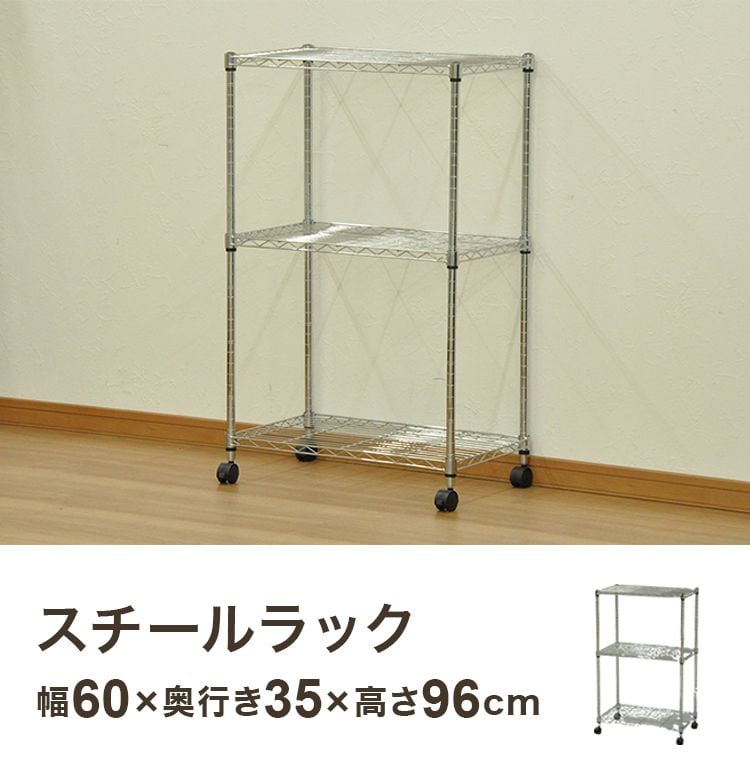 スチールラック 幅60 奥行き35 高さ96 シェルフ ワイヤー オープンラック キャスター付き コンパクト リビング スリム ポール径19mm 防サビ 収納【送料無料】
