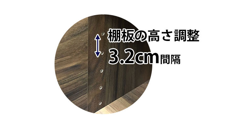 ガラス扉内の棚板は可動式で、10段階の高さに調節可能な棚板が2枚付属しております。