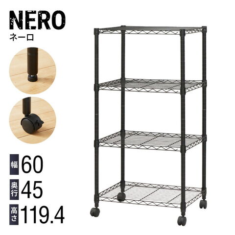 ネーロ スチールラック 4段 幅60 奥行き45 四段 オープンラック ラック スチール 収納 ヴィンテージ おしゃれ スリム コンパクト 薄型 棚【送料無料】
