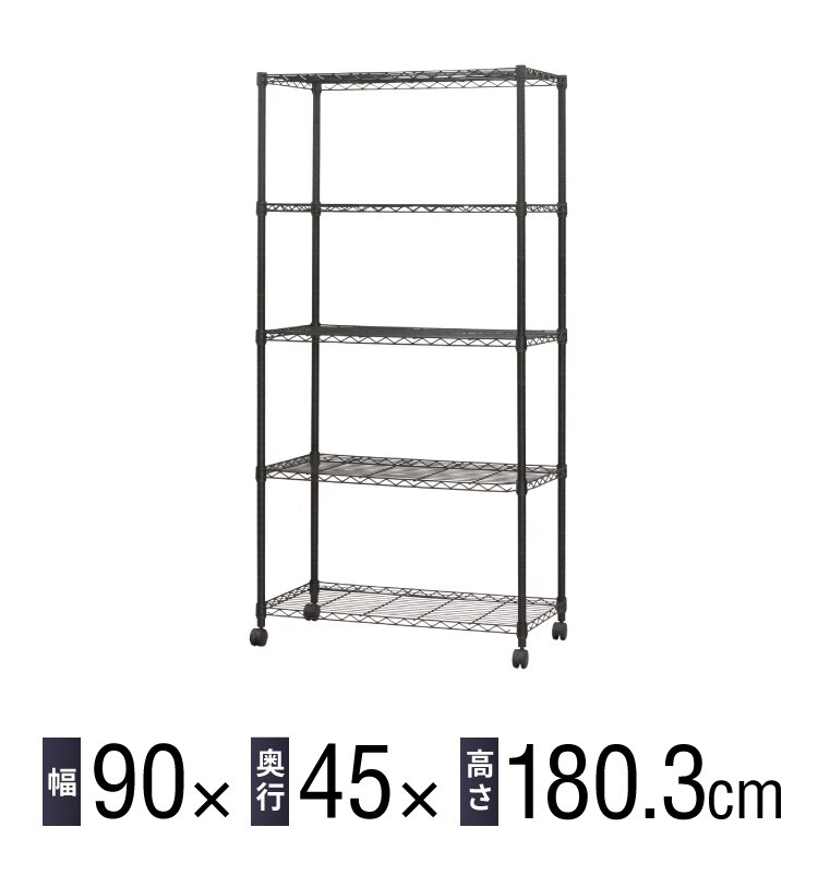 ネーロ スチールラック 5段 幅90 奥行き45 五段 オープンラック ラック スチール 収納 ヴィンテージ おしゃれ ワイド コンパクト 薄型 棚【送料無料】