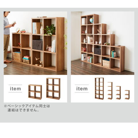 複数の専用アイテムを組み合わせることで、オリジナルのオープンラックを作り上げます。
