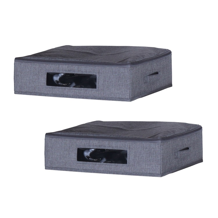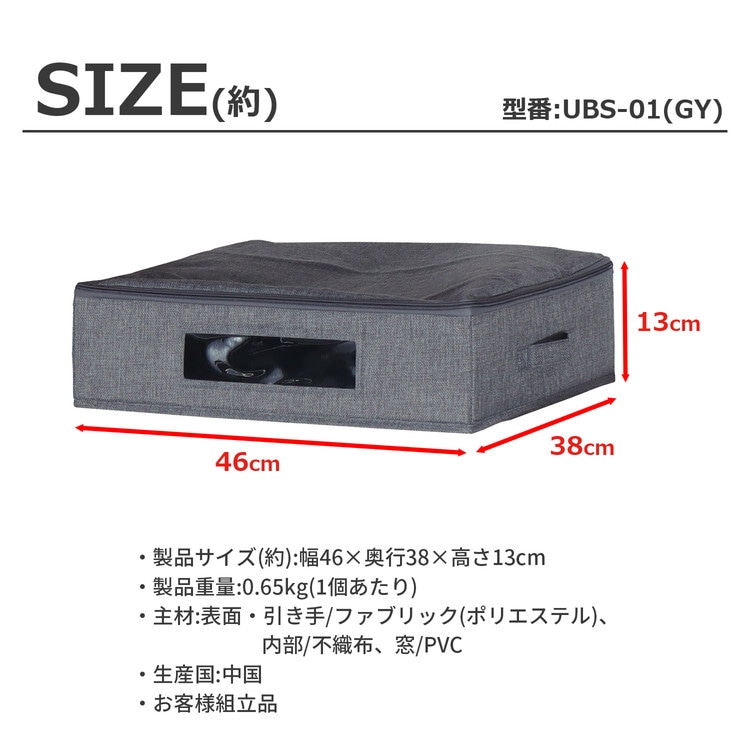 ●落ち着いたグレーの収納ケースは高さ約13cmで、ベッド下などのすき間に収まるサイズです。
