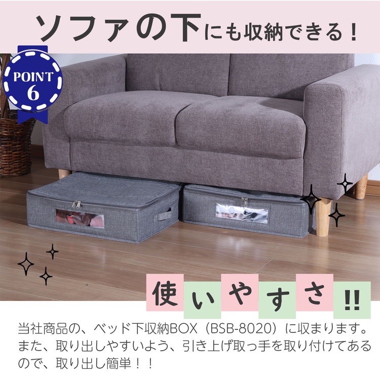●別売のベッド下収納ラック(BSB-8020シリーズ)にぴったり2個収まるサイズ。
