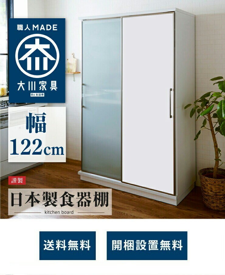 食器棚 片面スライドガラス扉タイプ モイス付き 幅122cm 高さ195cm 奥行55cm 【大川家具 国産 日本製 開梱設置無料】 キッチン収納 ダイニング収納 食器棚 【送料無料】