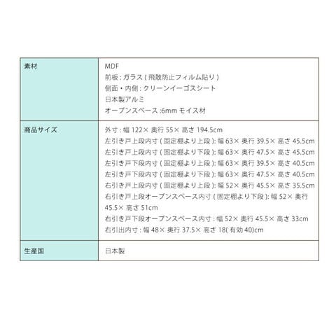外寸:幅122×奥行55×高さ194.5cm