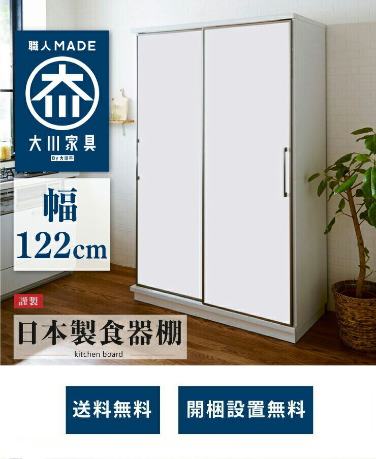 食器棚 両面スライド板戸タイプ モイス付き 幅122cm 高さ195cm 奥行55cm 【大川家具 国産 日本製 開梱設置無料】 キッチン収納 ダイニング収納 【送料無料】