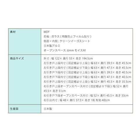 外寸:幅122×奥行55×高さ194.5cm