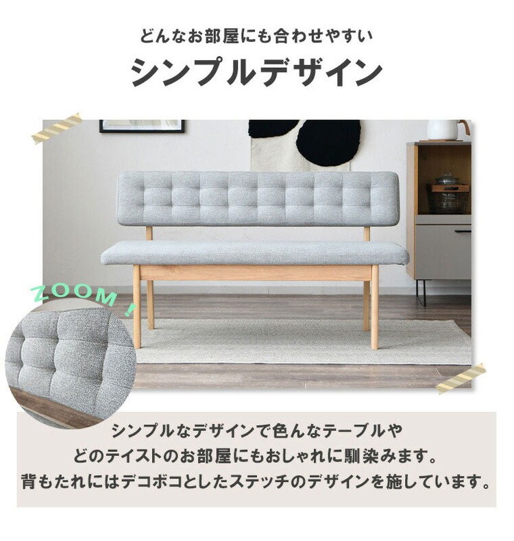 ダイニングチェア 2人掛け おしゃれ ベンチ 単品 幅130cm 背もたれ 木製 北欧 長椅子 イス グレー 灰色 高級 食卓椅子 リビング 木製チェア 北欧風 ダイニング シンプル【送料無料】