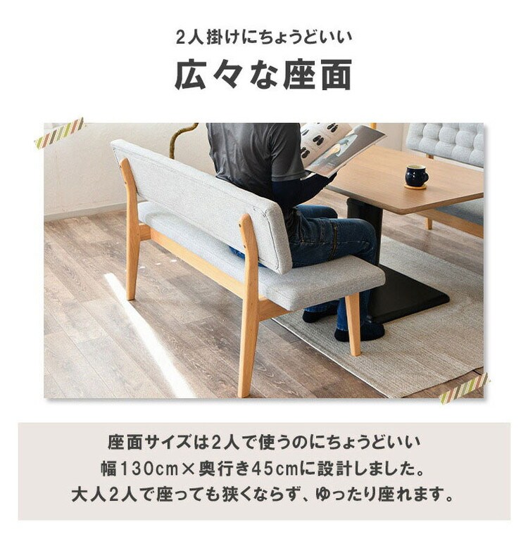 ・座面サイズは2人で使うのにちょうどいい幅130cm×奥行き45cmに設計