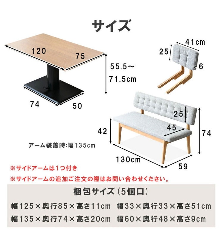 ダイニングセット 4点セット 昇降テーブル ベンチ サイドアーム 昇降式テーブル 高さ調整 長方形 ダイニングテーブルセット 4人用 ベンチ 長椅子 サイドアーム付き カフェテーブル 2脚セット シンプル【送料無料】のレビュー