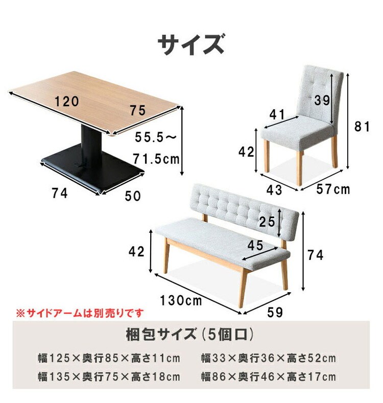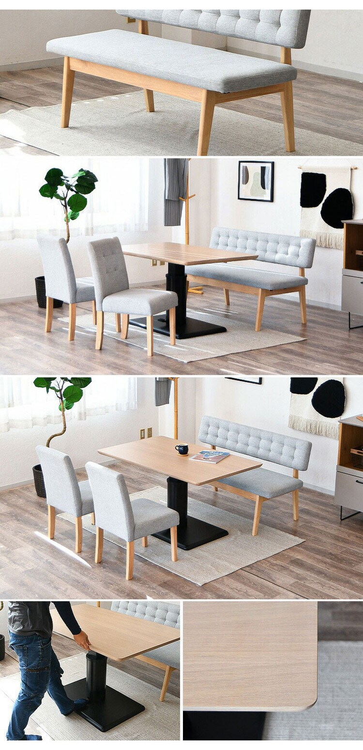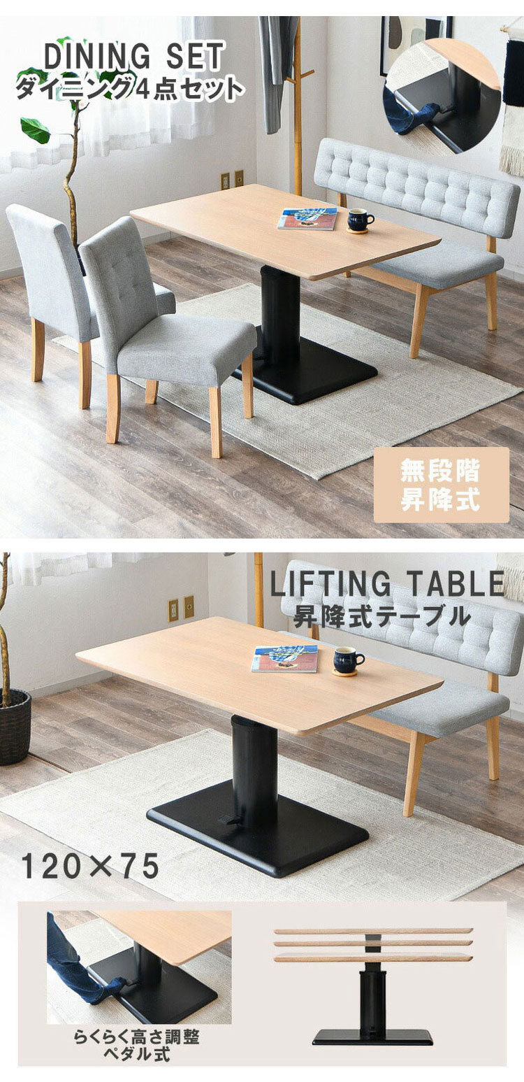ダイニングセット 4点セット 昇降テーブル ベンチ チェア 昇降式テーブル 高さ調整 長方形 ダイニングテーブルセット 4人用 ベンチ 長椅子 背もたれ 2脚セット カフェテーブル【送料無料】