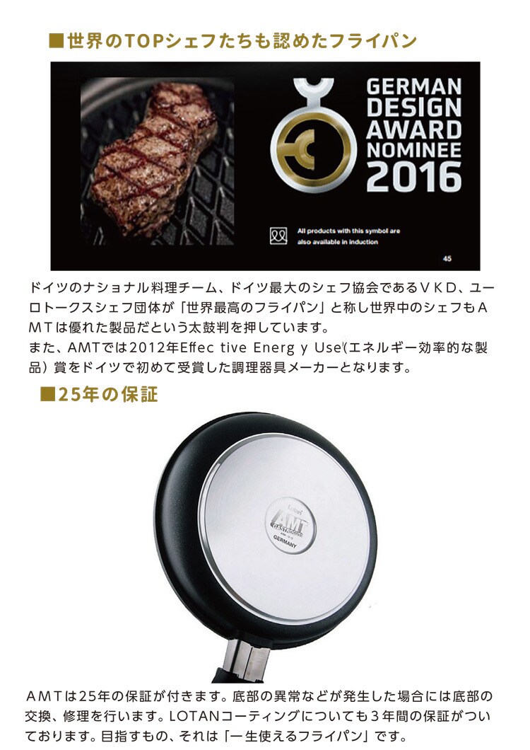 AMT Strongフライパン 24cm 底5cm ドイツ製 炒め鍋 ガス火専用 いため鍋 アルミニウム(フッ素樹脂塗膜加工)【メーカー公式】 【25年保証】 【送料無料】のレビュー