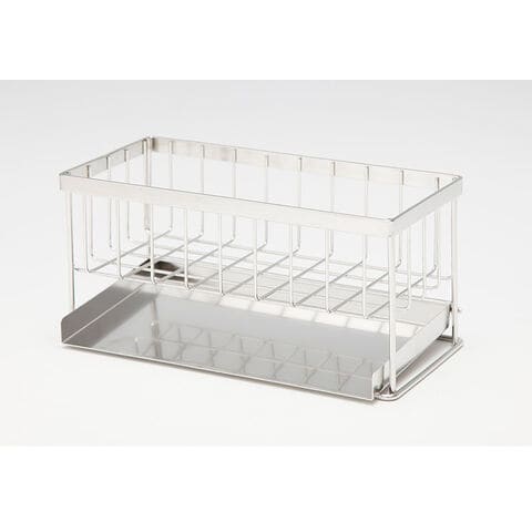 清潔で錆びにくいステンレス製で、たまった水がシンクに流れるように傾けて設置できる優れものです。