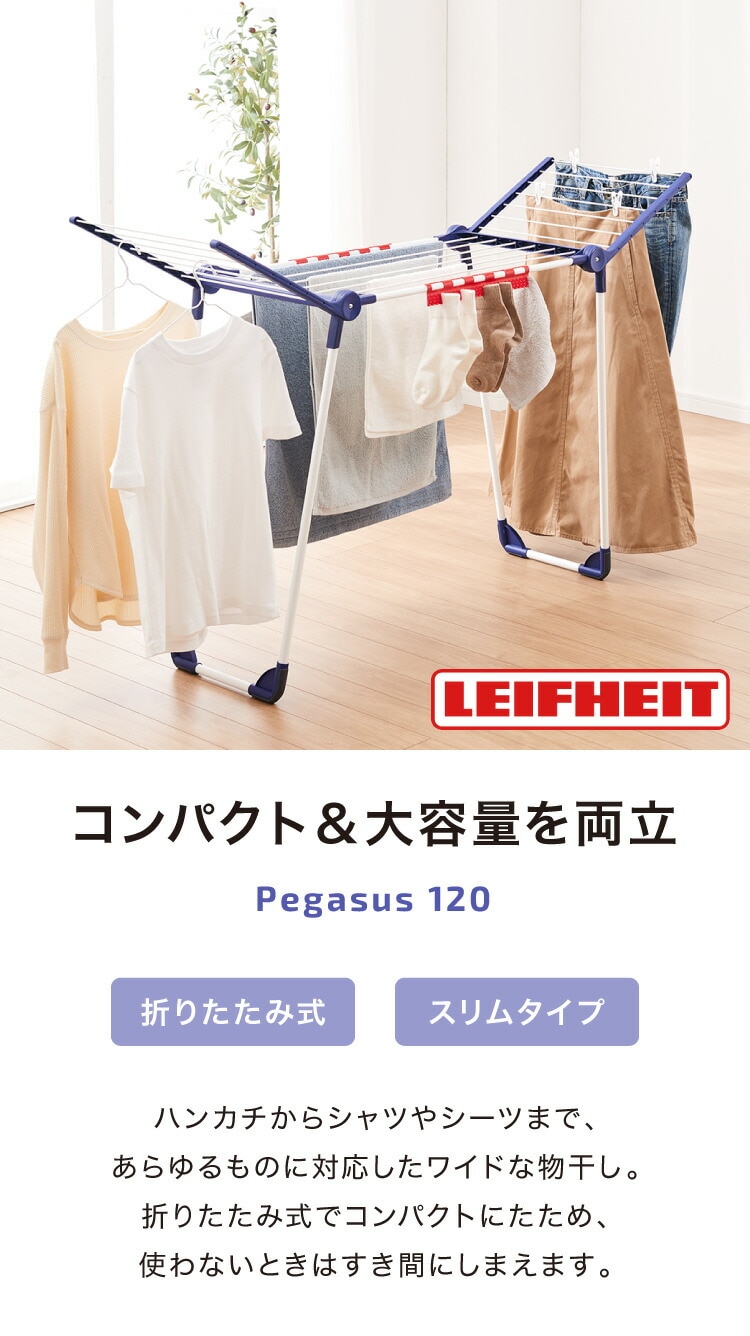 部屋干し 折りたたみ 物干し ライフハイト ペガサス120 靴下干し機能付き ドイツ製 超頑丈【送料無料】