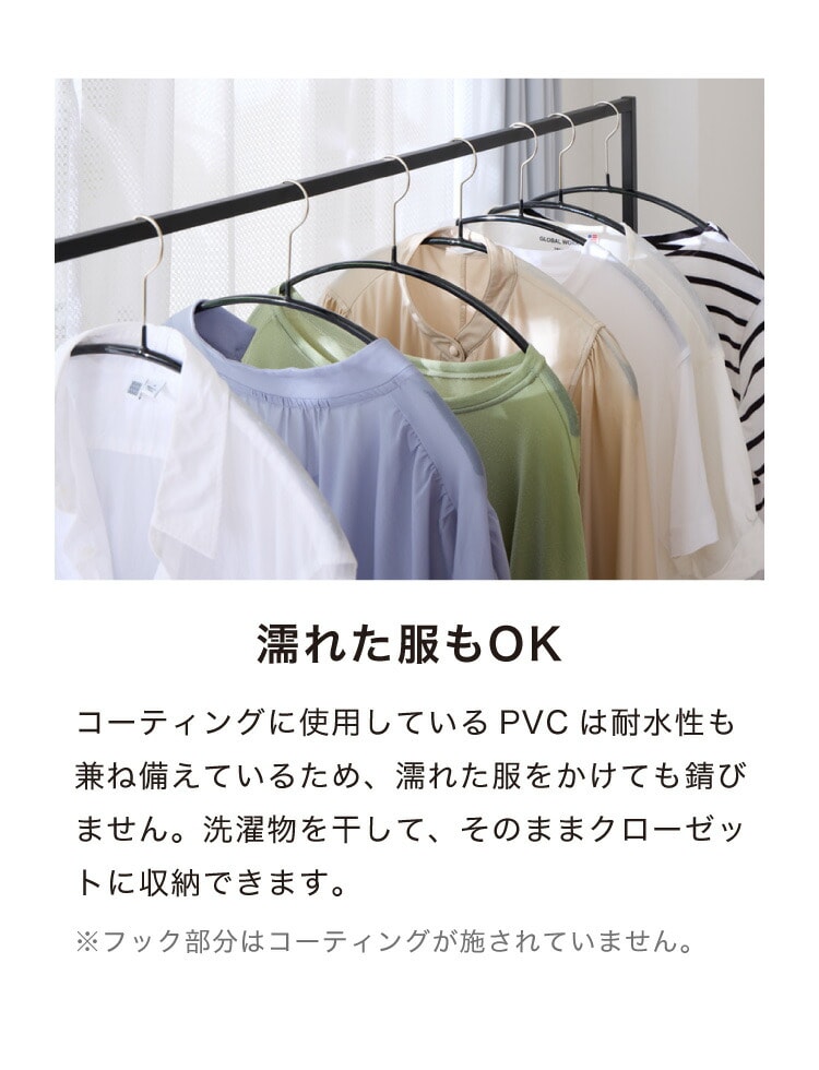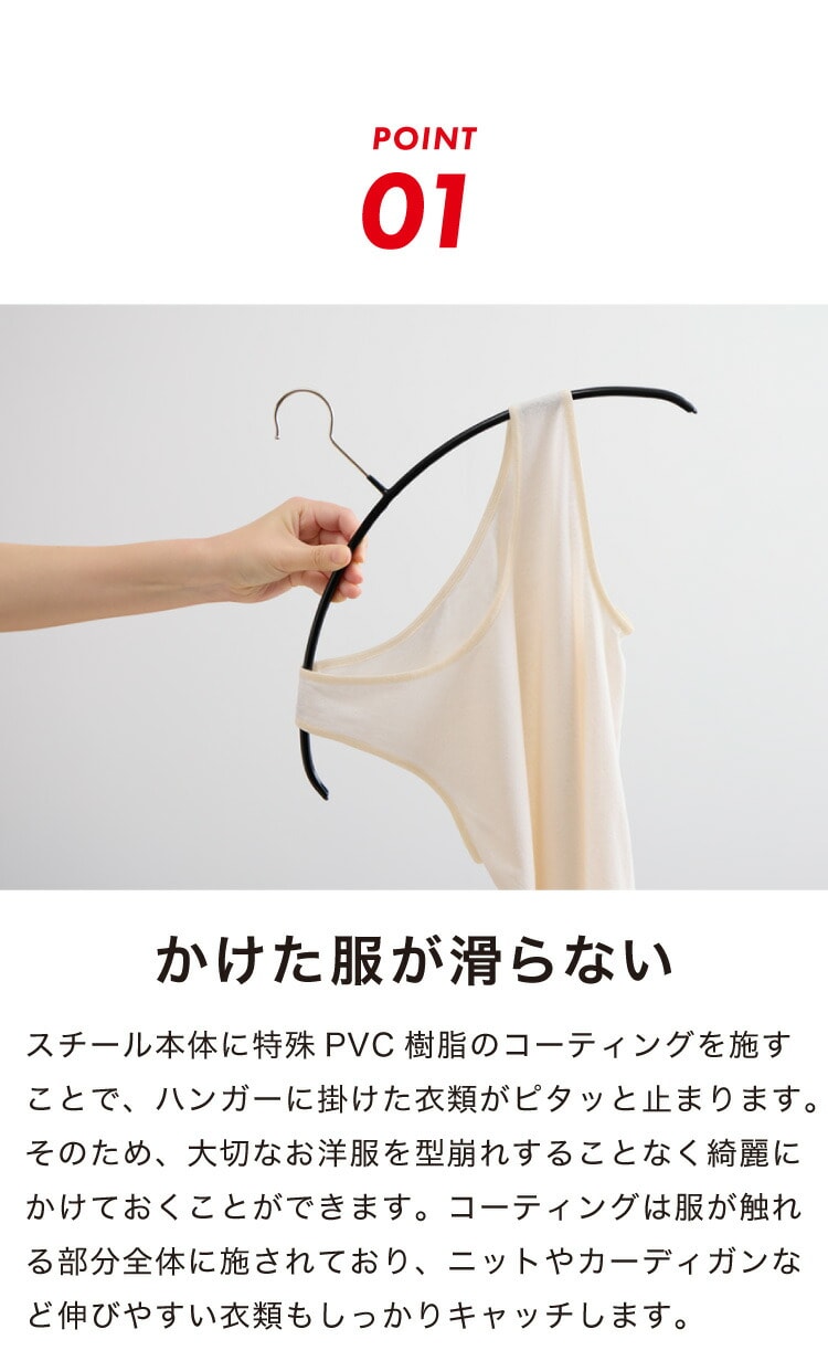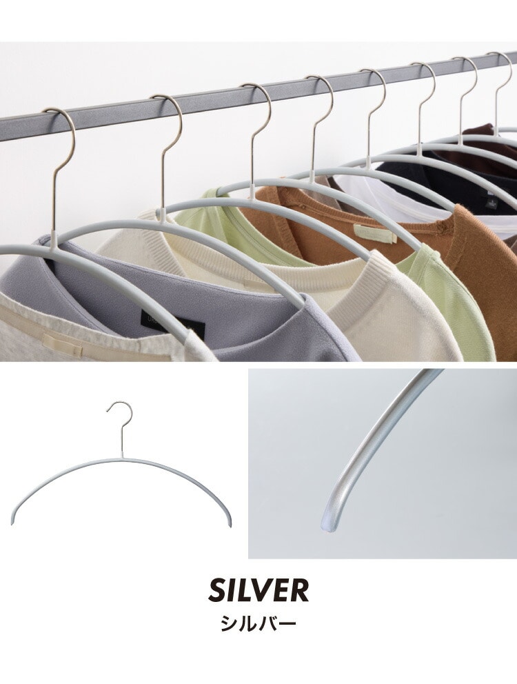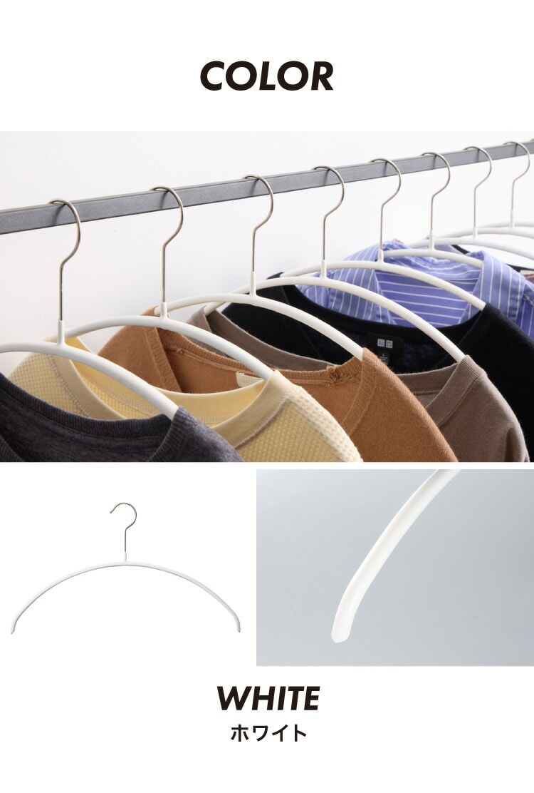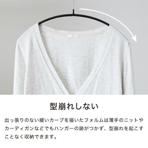 ベストセラーシリーズのエコノミックは前開きのカーディガンや襟なしのトップス、薄手のニットの収納におすすめです。表面の特殊コーティングで洋服が滑り落ちにくく、薄型なので多くの洋服を収納できます。ハンガー自体もシンプルなフォルムでおしゃれなデザインです。