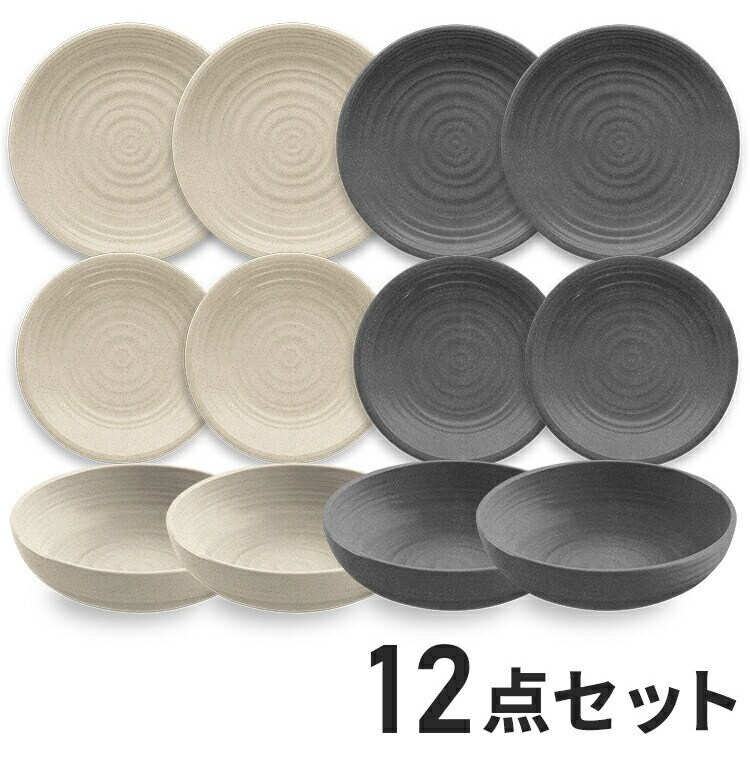 planta アーティザン 12点セット バーチ&グレー メラミン食器 割れにくい おしゃれ 食洗機対応 ボウル お皿 深皿 可愛い 電子レンジ不可 食洗機対応 食器セット プレート【送料無料】