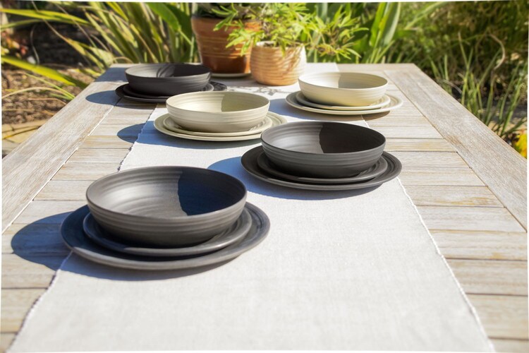 マットな質感と手作りの風合いを模したシックなメラミン食器です