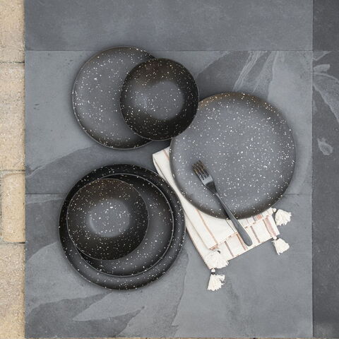 マットな質感の中に星座のような斑点が散りばめられたシックな風合いのメラミン食器です