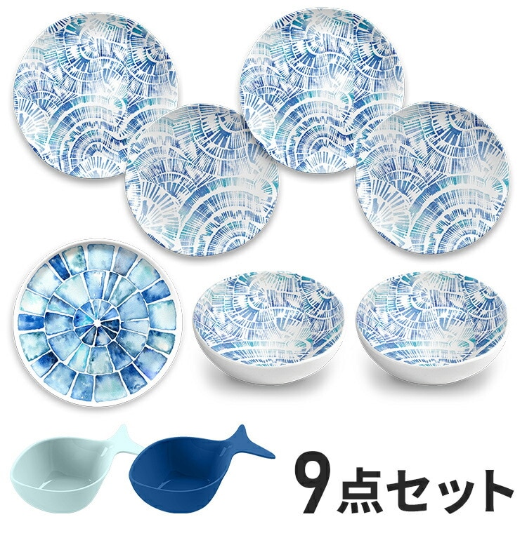 コースタルスカロップ 9点セット メラミン食器 割れにくい おしゃれ 食洗機対応 ボウル お皿 深皿 可愛い 電子レンジ不可 食洗機対応 食器セット プレート【送料無料】