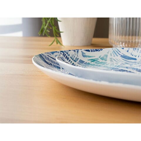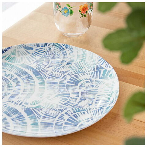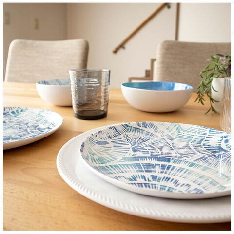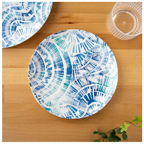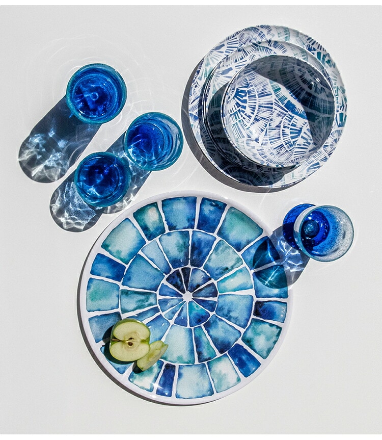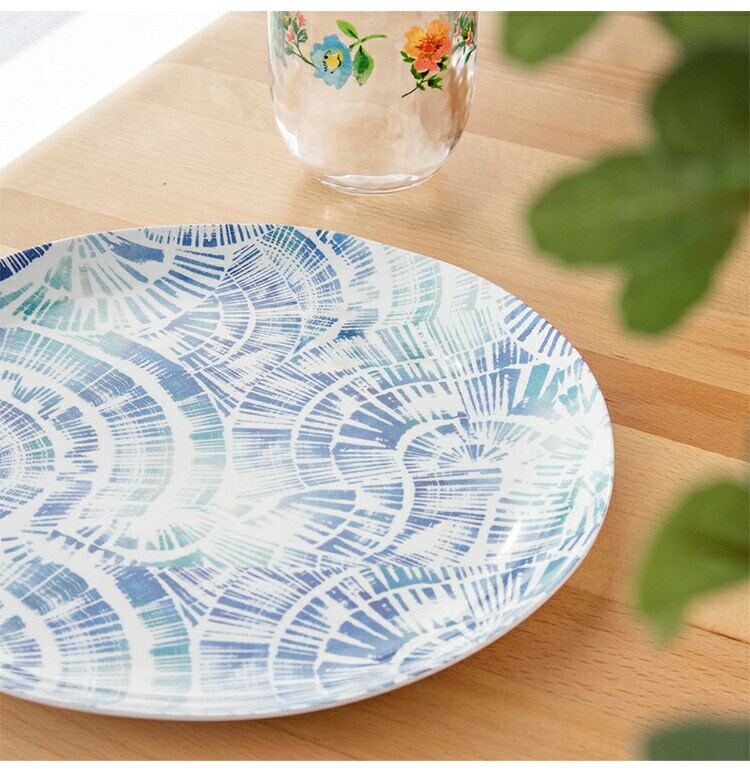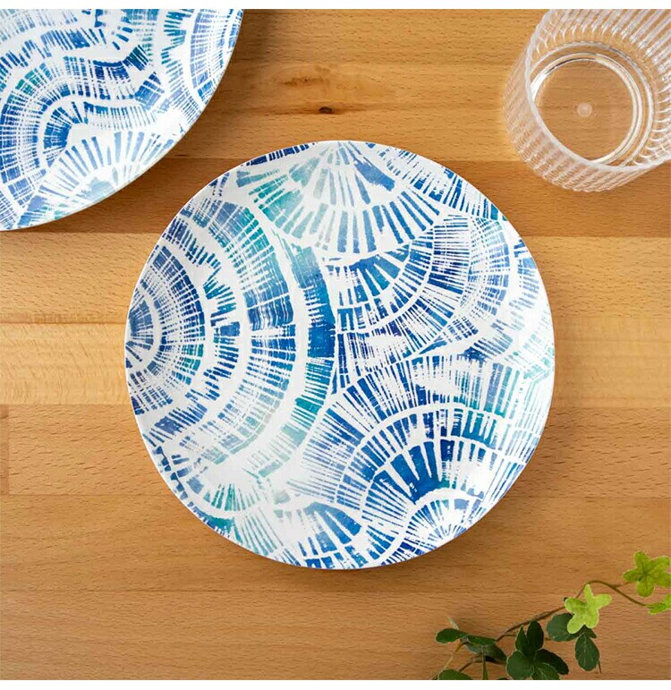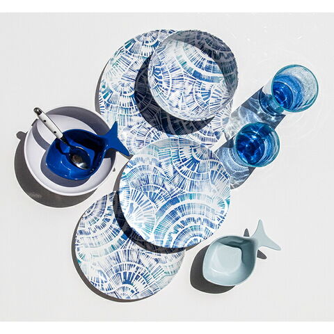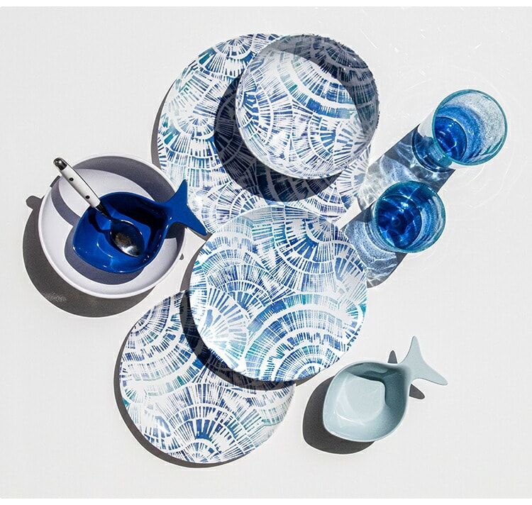 爽やかなブルーとホタテの柄をモチーフにしたメラミン食器です