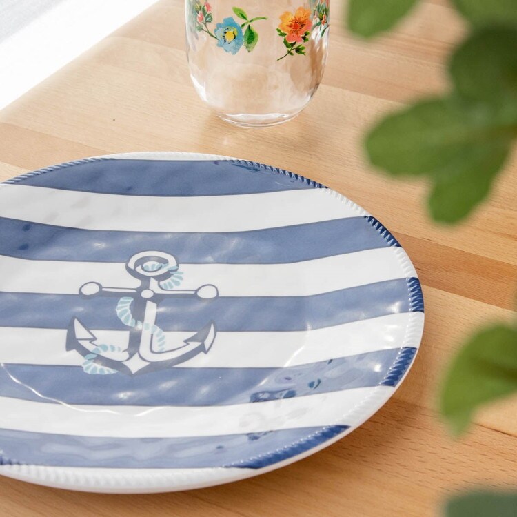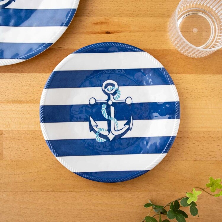 ノーティカルアンカー サラダプレート 22cm ターホン TarHong メラミン食器 22cm 割れにくい おしゃれ 食洗機対応 プレート お皿 ワンプレート 可愛い 電子レンジ不可 食洗機対応