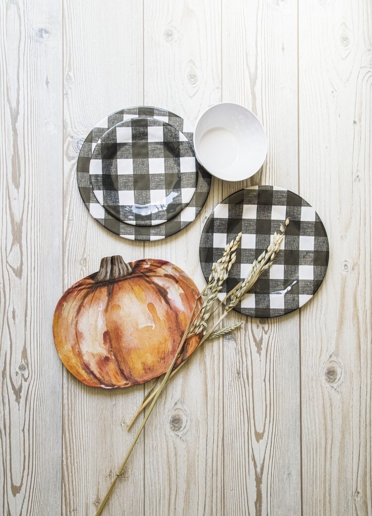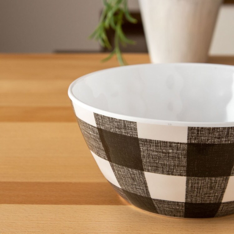 落ち着いた黒いチェック柄が素敵な質感のあるメラミン食器です
