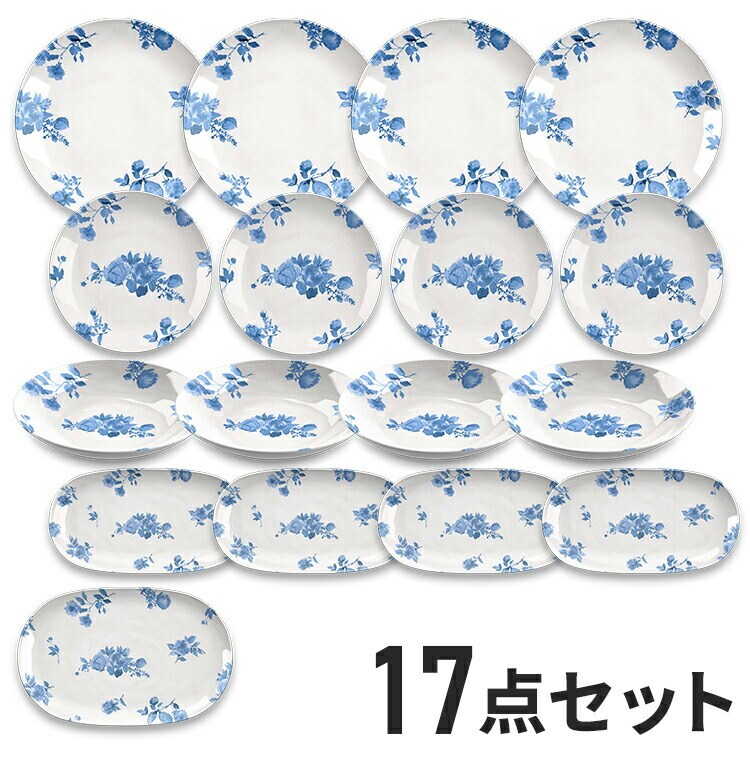 コテージブルーフローラル 17点セット メラミン食器 割れにくい おしゃれ 食洗機対応 ボウル お皿 深皿 可愛い 電子レンジ不可 食洗機対応 食器セット プレート【送料無料】