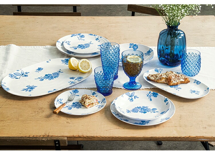 メラミンは軽くて割れにくく、手入れもしやすいのが特徴です。テーブルウェアコレクションでは、シンプルでスタイリッシュなものから、おしゃれな欧風デザイン、和食器テイストまでラインアップが豊富です。