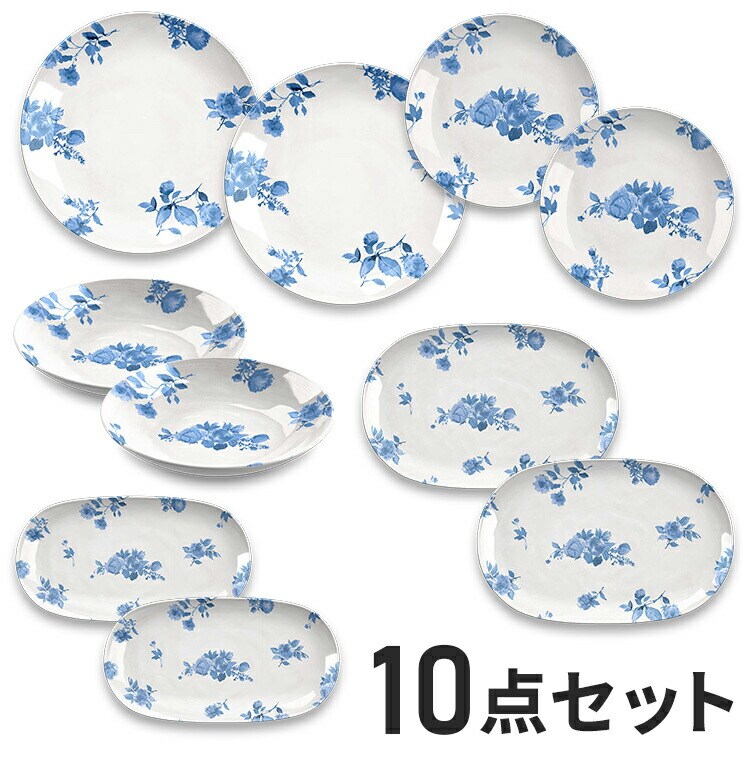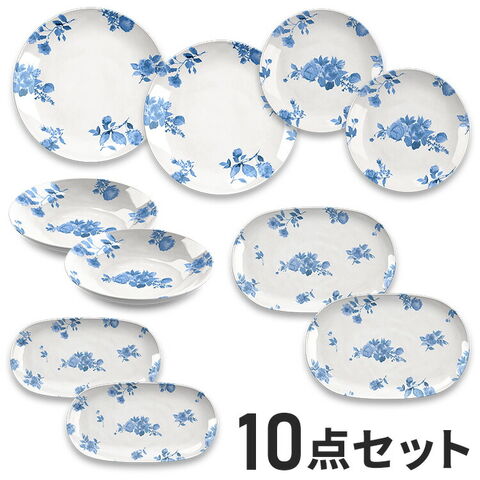 コテージブルーフローラル 10点セット メラミン食器 割れにくい おしゃれ 食洗機対応 ボウル お皿 深皿 可愛い 電子レンジ不可 食洗機対応 食器セット プレート【送料無料】