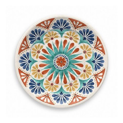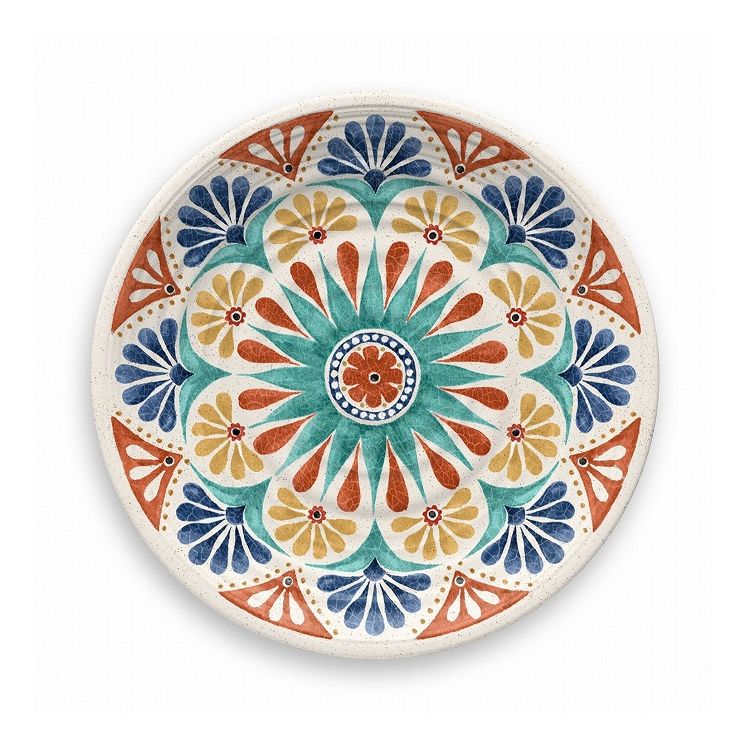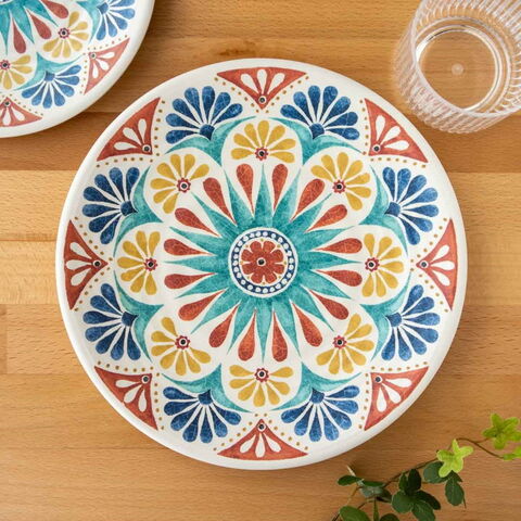 ハンドメイド風で南欧デザインが特徴のメラミン食器です。自然のモチーフをパッチワークのように組み合わせたユーモラスなデザインです