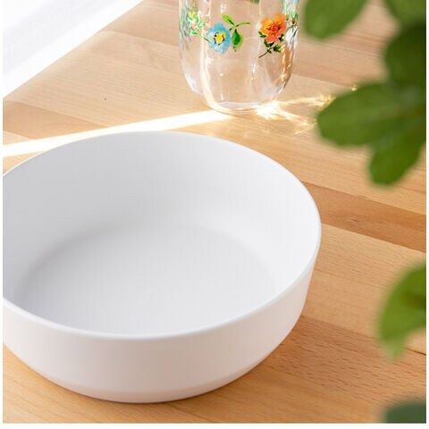 ピュアホワイト、ベーシックで毎日使用しても飽きのこないデザインが特徴のメラミン食器です