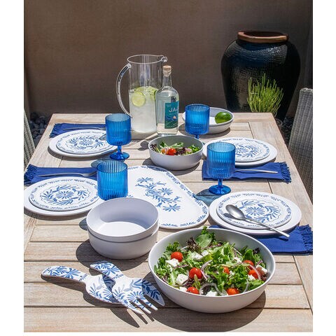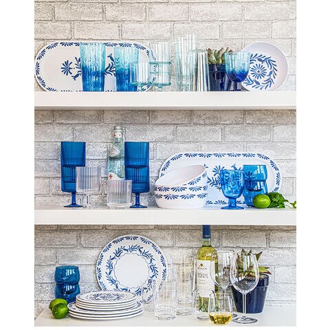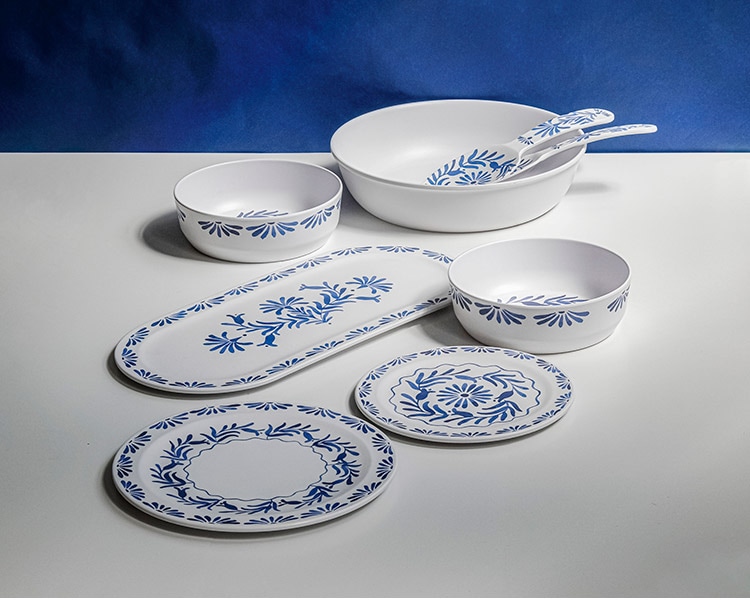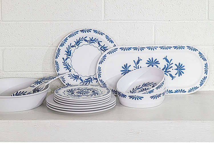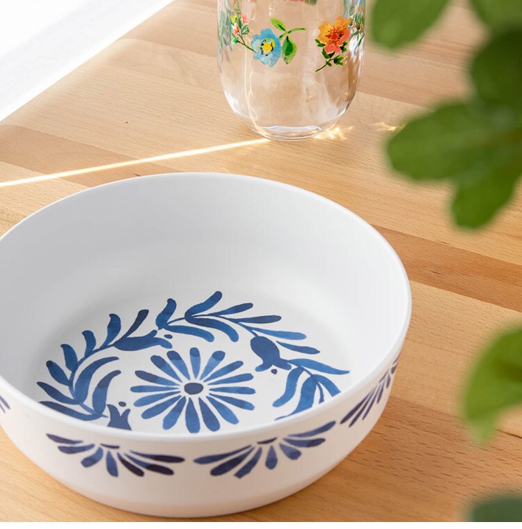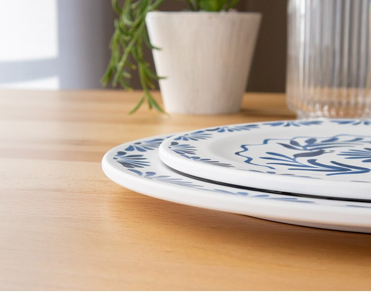 ホワイトベースにブルーのプラントデザインが特徴のメラミン食器です。青磁をイメージしたヨーロッパスタンダードデザインです