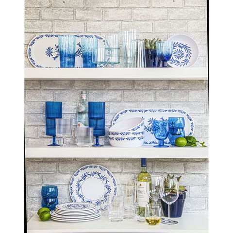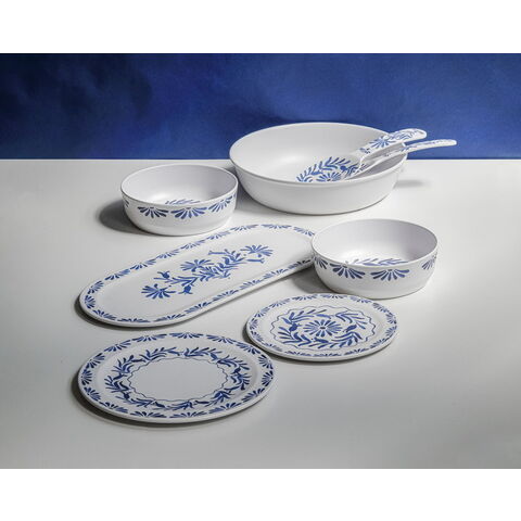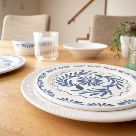 ホワイトベースにブルーのプラントデザインが特徴のメラミン食器です。青磁をイメージしたヨーロッパスタンダードデザインです