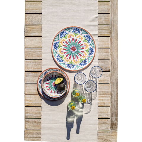ハンドメイド風で南欧デザインが特徴のメラミン食器です。自然のモチーフをパッチワークのように組み合わせたユーモラスなデザインです
