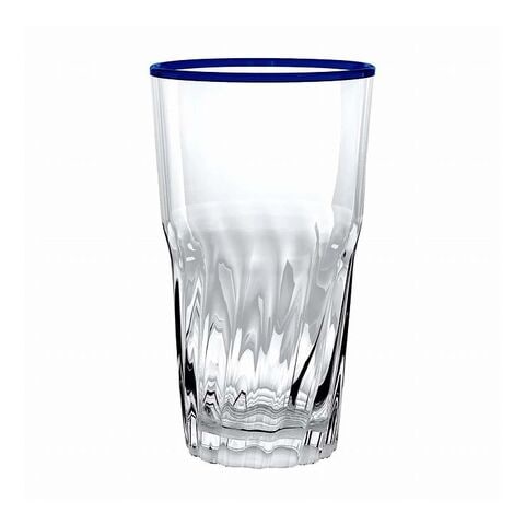 捻りの形状と飲み口の青いデザインが楽しい樹脂製ドリンクウェアです