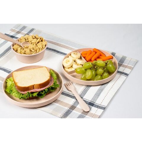 ポリプロピレン樹脂に自然由来の麦わら原料を配合した環境にやさしい食器です。当製品に使用される麦わら原料は、食用穀物(小麦)を収穫した後の副産物であるため、原料入手のための新規栽培や追加収穫の手間は掛かっていません。従来廃棄物として伝統的に小麦の収穫後に麦わらを燃やしていましたが、これはより多くの二酸化炭素ガスを放出することもあり、麦わらの有効活用によって廃棄物と二酸化炭素排出の削減に貢献しています。BPAフリー、食洗機/電子レンジ対応(耐冷-20℃ 耐熱140℃)