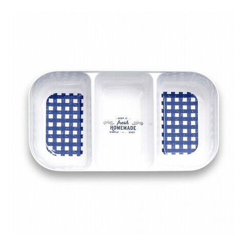 ホームメイドネイビー ギンガムチェック 三つ仕切りサービングトレイ 40cm ターホン TarHong トレー 40cm プレート 三つ仕切りトレイ お盆 メラミン食器 割れにくい おしゃれ 食洗機対応