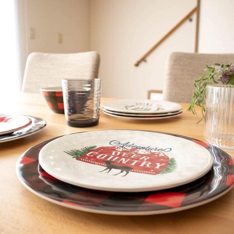 森やロッジの絵柄をモチーフとした質感のあるメラミン食器です