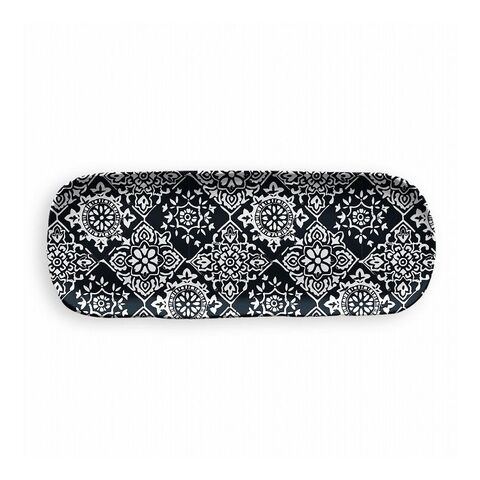 ブラック&ホワイトのモノクロカラーで幾何学デザインのメラミン食器です