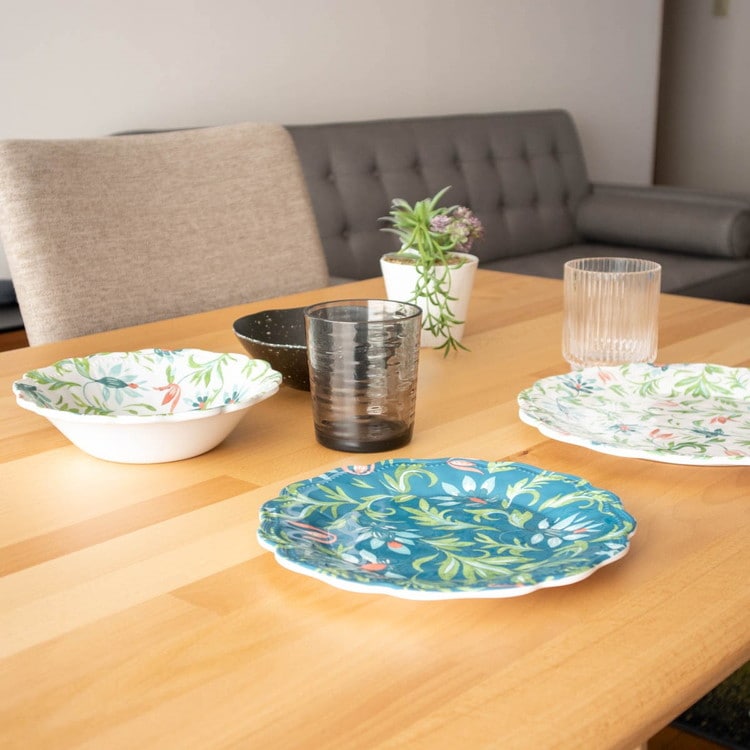 メラミンは軽くて割れにくく、手入れもしやすいのが特徴です。テーブルウェアコレクションでは、シンプルでスタイリッシュなものから、おしゃれな欧風デザイン、和食器テイストまでラインアップが豊富です。