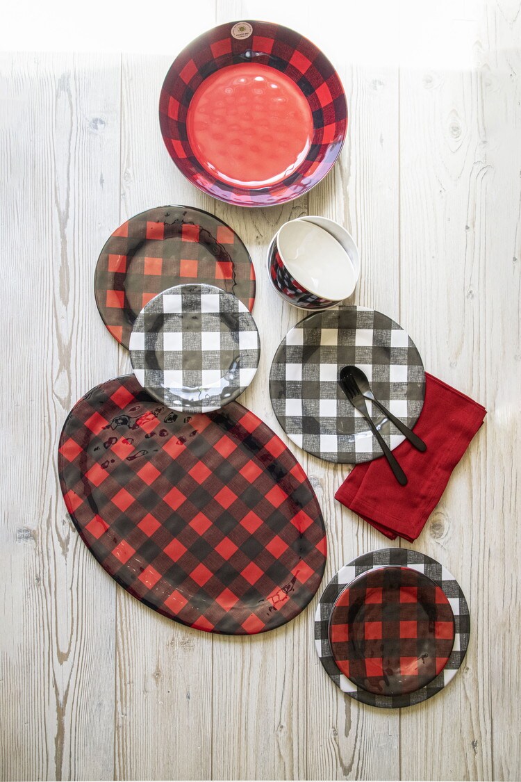 落ち着いた赤いチェック柄が素敵な質感のあるメラミン食器です