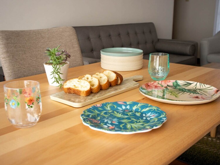 メラミンは軽くて割れにくく、手入れもしやすいのが特徴です。テーブルウェアコレクションでは、シンプルでスタイリッシュなものから、おしゃれな欧風デザイン、和食器テイストまでラインアップが豊富です。